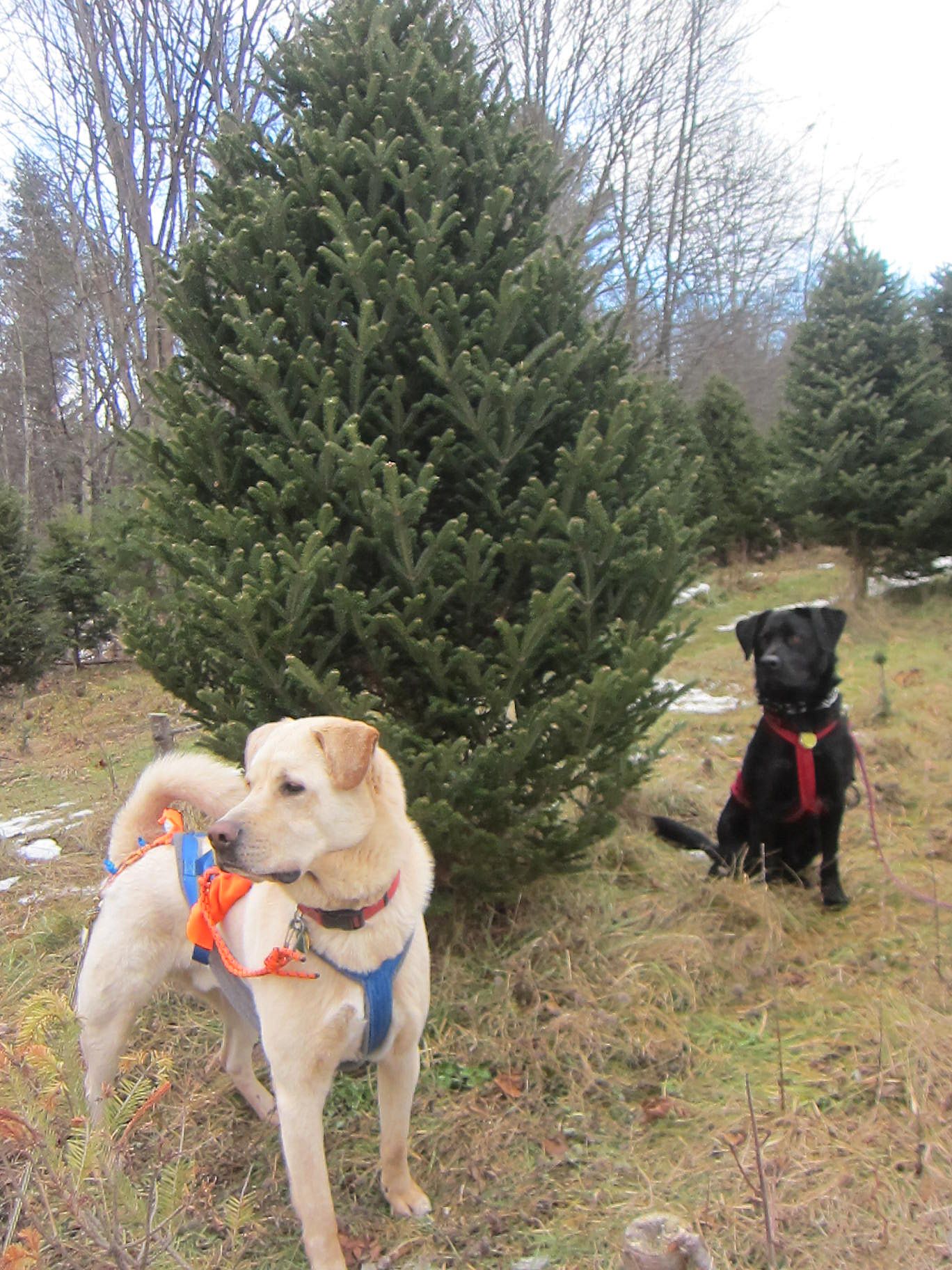 For the past 2 years, Griff has helped us pull out the tree after we cut it, and this year, Edgar will join us. We’ve lost most of our snow, but have lovely patches of grey frozen crust, and frozen brown mud.