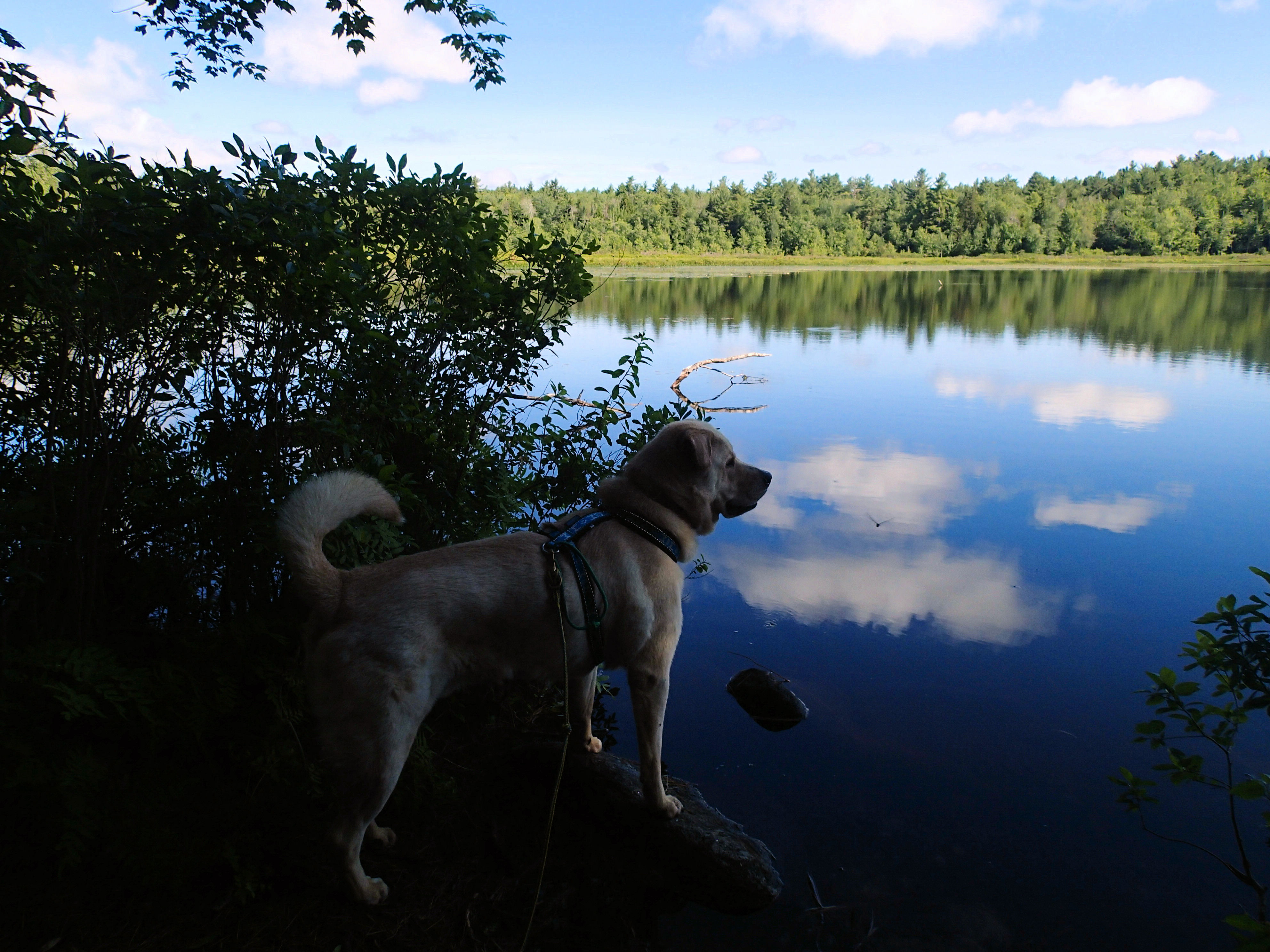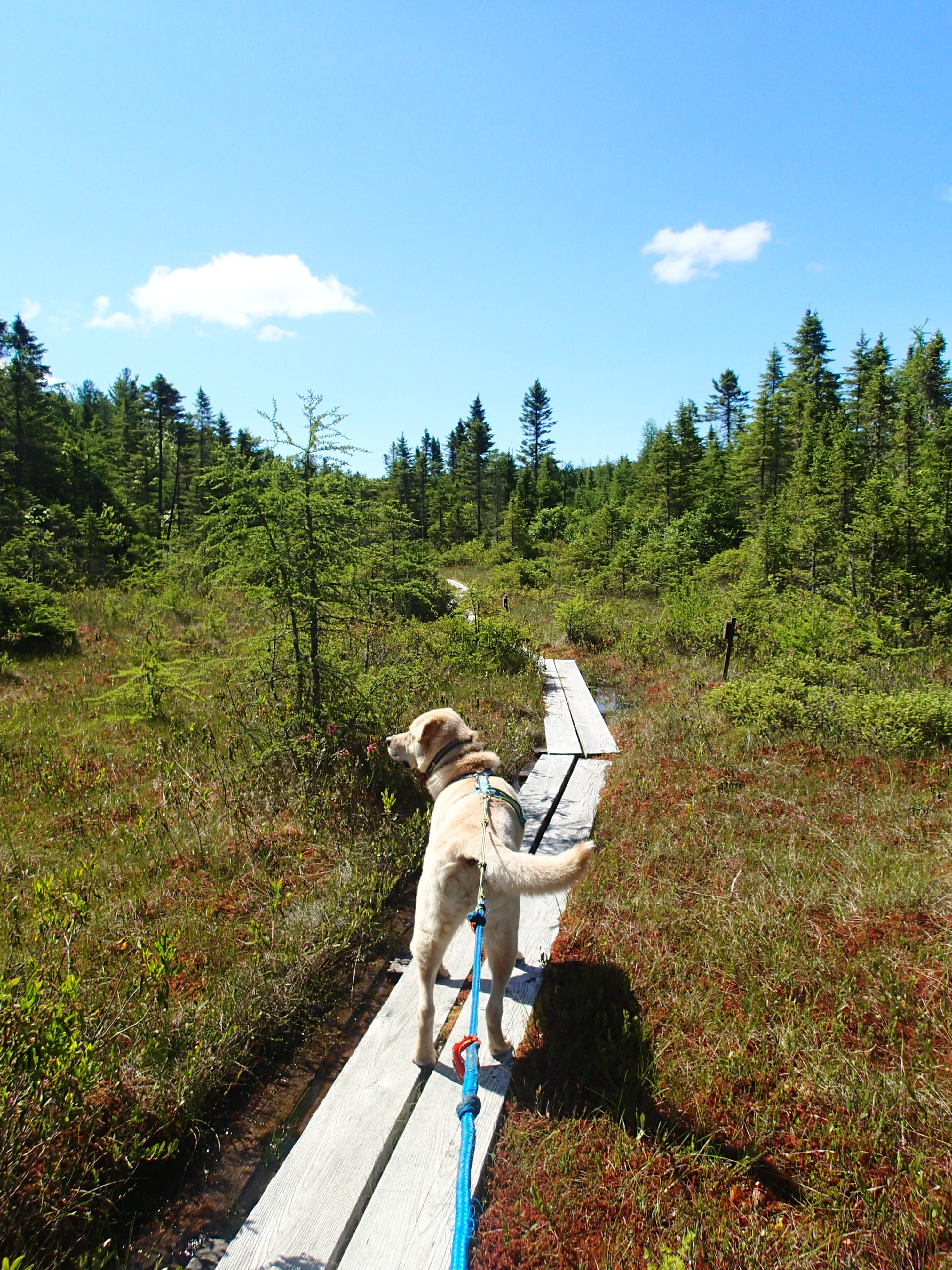 While in New London,NH, Gryphon and I finished the last of the trails on the trails checklist…Gryphon was very well behaved on a bog trail (he is excellent at staying ON the puncheons), and though many of the trails were very muddy and buggy, we did find a few gems, and have competed the checklist. I submitted both our names with the check-off sheet, so theoretically, in October we will each receive a trail hiker patch.